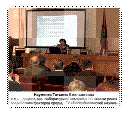 Науменко Татьяна Емельяновна, к.м.н., доцент, зав. лабораторией комплексной оценки риска воздействия факторов среды, ГУ «Республиканский научно-практический центр гигиены».