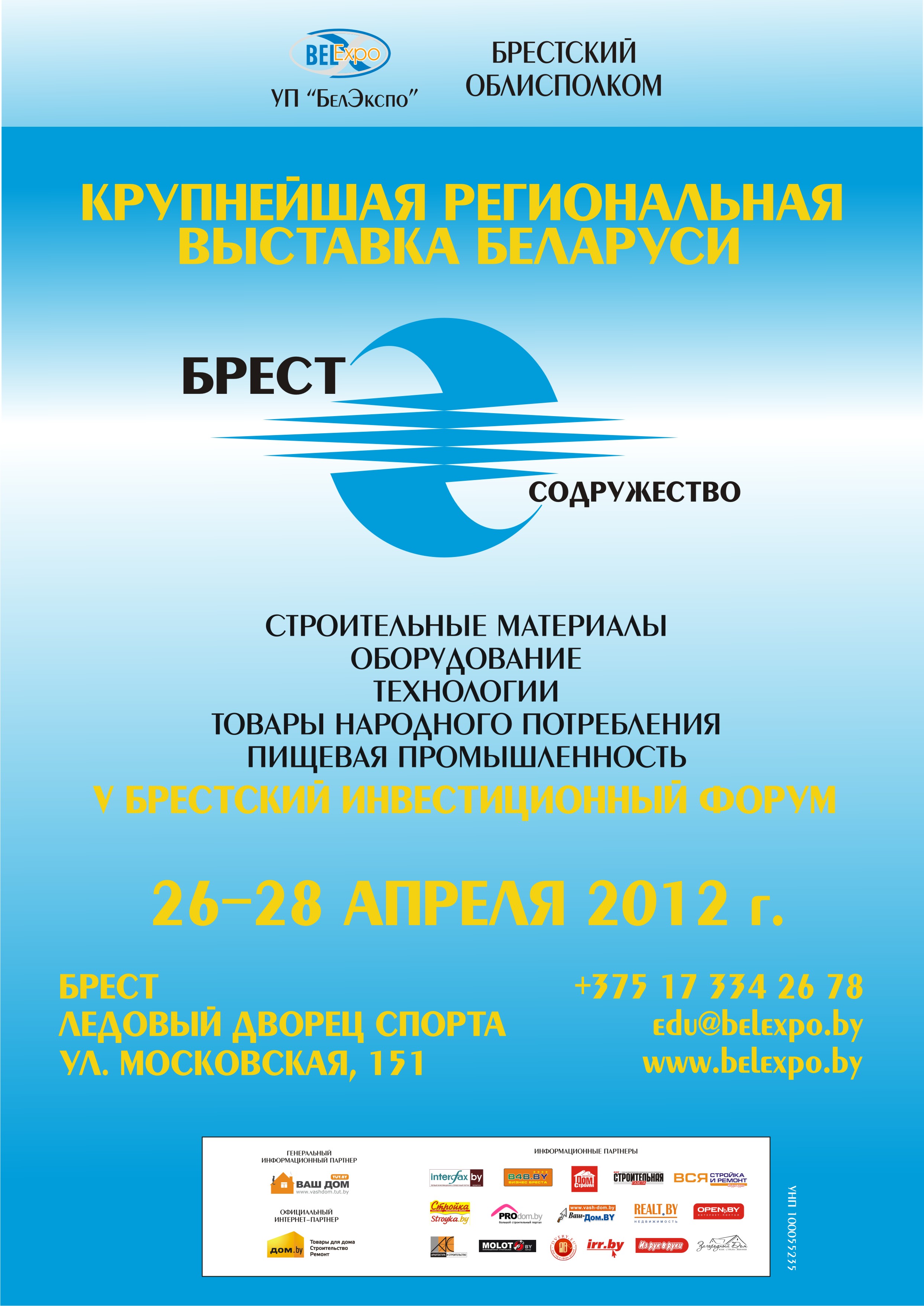 Оргкомитет выставки приглашает принять участие в 14-й международной выставке-ярмарке «Брест. Содружество-2012», которая будет проходить в Бресте с 24 по 27 апреля 2012 года.