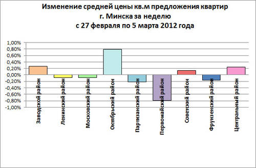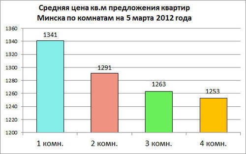 За неделю с 27 февраля по 5 марта 2012 года по данным аналитического центра Realt.by средняя цена предложения квадратного метра квартир на вторичном рынке жилья в г. Минске не изменилась, составив 1294 $.