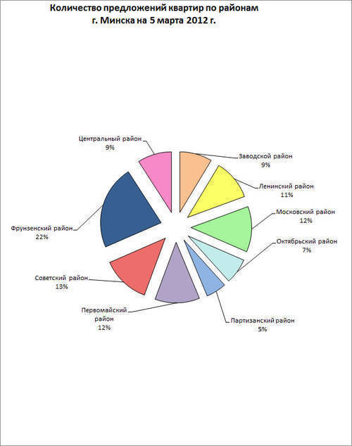 Лидером по объему предложения вторичного жилья в г. Минске на 5 марта 2012 года является Фрунзенский район, 22,5% от всего предложения. Количество предложений квартир в базе Realt.by за неделю увеличилось на 1,88%.