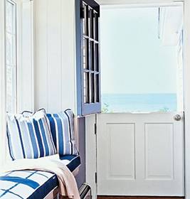 Обратимся к последним. Голландские — двери весьма необычные. Традиционно они состоят из двух половинок, разделённых горизонтально. Верхняя часть часто бывает открытой, но это случается, скорее, в её «естественных условиях», т. е. по прямой необходимости и назначению — для содержания лошадей или других животных. Это устройство двери позволяет животным кормиться, в то время как нижняя половина, оставаясь закрытой, не выпускает на волю. Исполненная в данной манере дверь, несмотря на «животное» прошлое, успешно прошла адаптацию в доме.