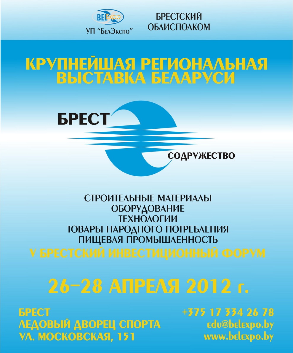 Большое разнообразие товаров из Беларуси и зарубежья представят участники выставки «Брест. Содружество-2012», которая пройдет с 26 по 28 апреля 2012 года. Многие участники в рамках выставки собираются провести презентации новых видов продукции.