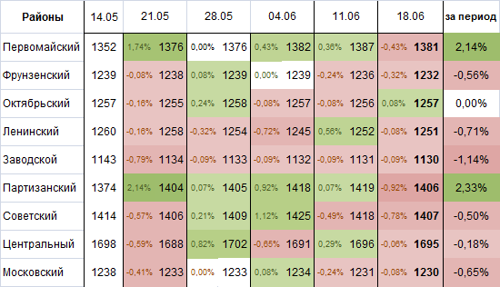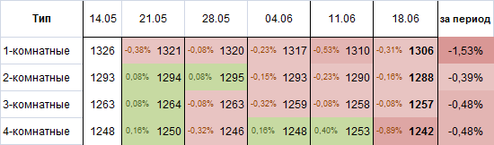 Динамика изменения стоимости квартир за неделю выглядит следующим образом:
