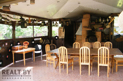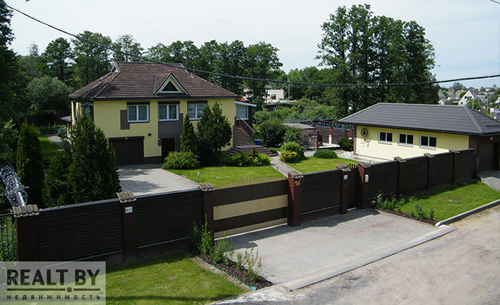Сам дом из красного кирпича расположен в 1.5 км. от МКАД и станции метро «Могилевская», д. Большой Тростинец. Занимает участок в 30 соток. Кроме дома здесь также находится отдельная просторная летняя кухня, гараж и необходимые хоз. постройки.