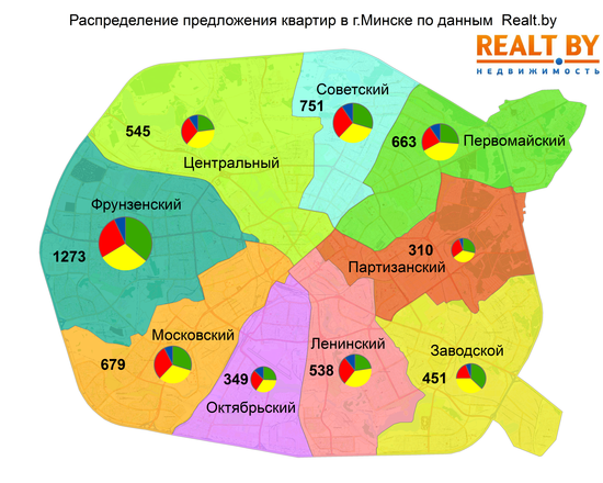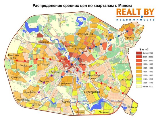 На квартальной карте города Минска ценовая ситуация выглядит следующим образом: