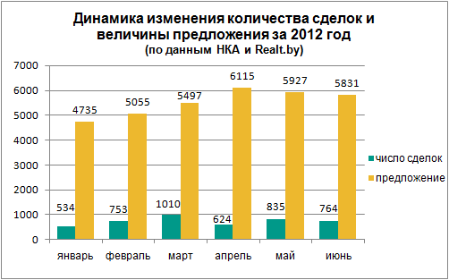 За период с 23 по 30 июля 2012 года аналитическим центром Realt.by были зафиксированы следующие изменения на первичном и вторичном рынках недвижимости: