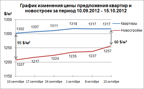 За период с 8 по 15 октября 2012 года аналитическим центром Realt.by были зафиксированы следующие изменения на первичном и вторичном рынках недвижимости: