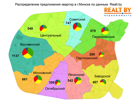 Динамика цен по районам гораздо более разнородная и по сравнению с прошлой неделей колебания были более существенными. Отрицательную динамику продемонстрировали 4 района из 9. Наибольшее падение отмечено в Советском и Партизанском районах. В то же время довольно существенный рост продемонстрировали Центральный, Октябрьский и Первомайский. Два последних также имеют лучшую месячную динамику.
