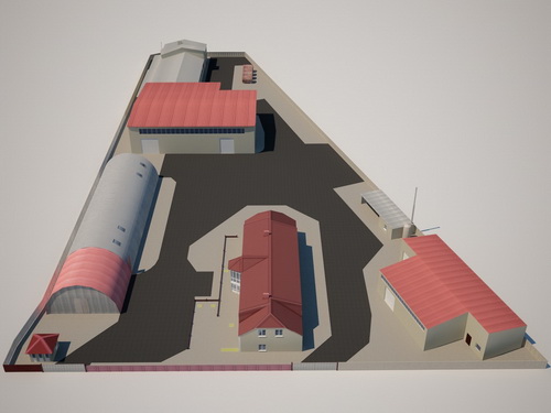 Производственный корпус также 2-хэтажный, высотой 4.4 м. Его общая площадь составляет 866.2 м2 (производство — 746 м² + навес 150 м2).