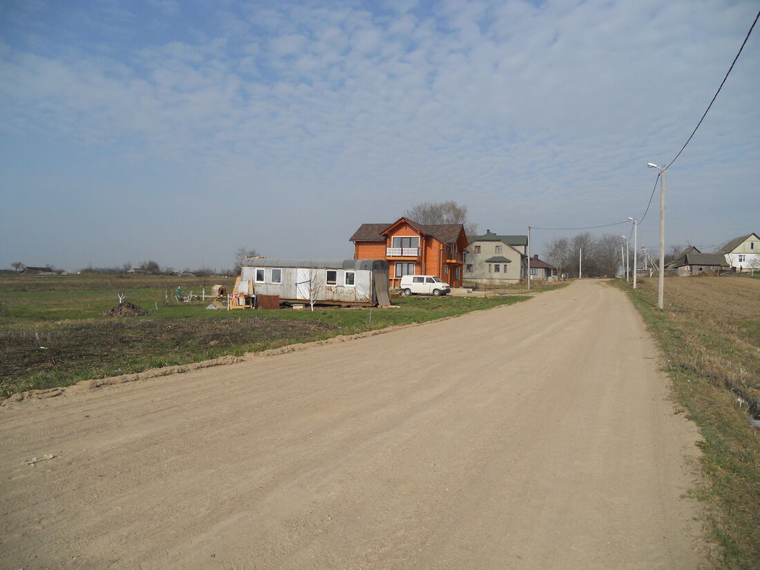 Участки расположены практически посередине поля. Подведенных коммуникаций нет — газ и электричество есть непосредственно в деревне, но это далеко. Наверняка, когда застройка более-менее закончится, коммуникации проведут и сюда, но когда это будет, неизвестно.