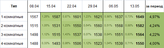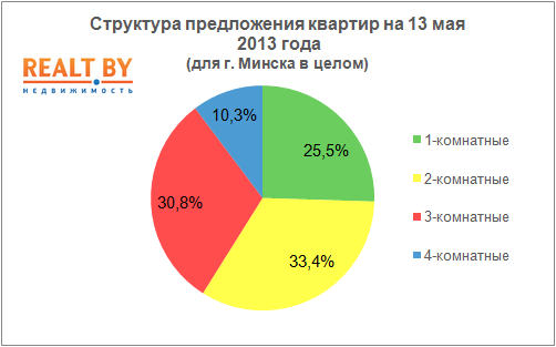 Структура предложения по типам квартир на 13 мая имеет следующий вид:
