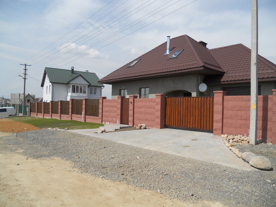 Это достаточно обжитое место. С одной стороны улицы находятся уже построенные жилые коттеджи, а с другой — дома, которые еще только строятся или горы строительного мусора. В общем, по сути все выглядит так, как в классическом коттеджном поселке.