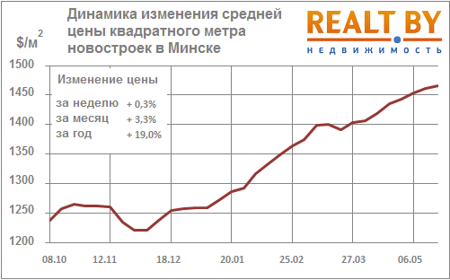 За неделю, с 13 по 20 мая 2013 года, информационно-аналитическим центром Realt.by были отмечены следующие изменения на первичном и вторичном рынке недвижимости города Минска: