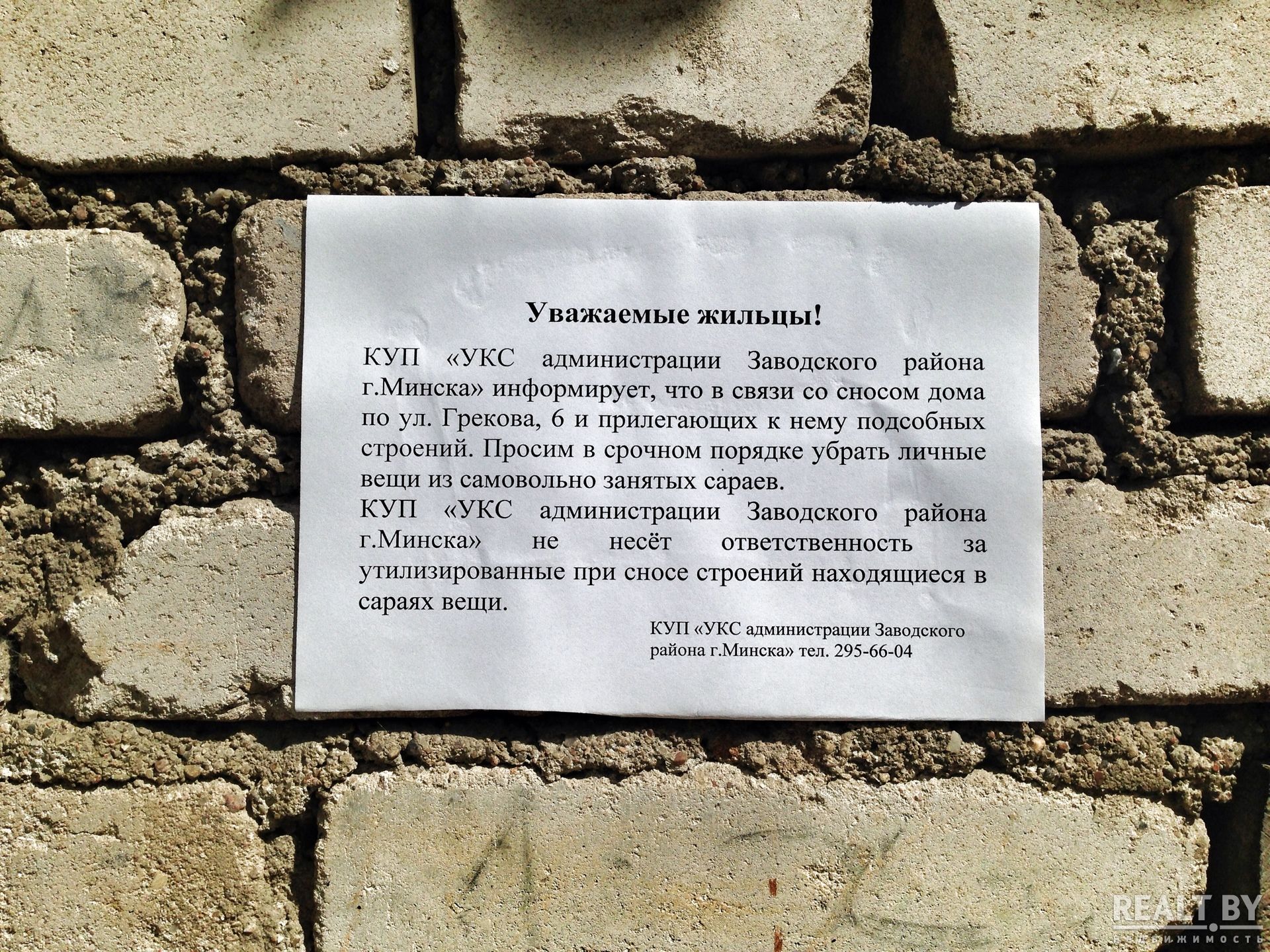 Снос дома № 6 по улице Грекова числится в списке дополнений в инвестиционную программу решением Минского городского совета депутатов от 23 ноября 2012 года. В документе упоминается также о сносе дома № 4, однако его мы не нашли, что и не удивительно — он был снесен в 2010 году.