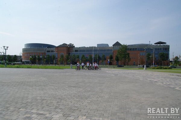 Стартовали мы от «Минск-Арены». Многопрофильный спортивный комплекс «Минск-Арена» на проспекте Победителей создает какое-то космическое впечатление. Все невольно задаются вопросом — а в Минске ли мы? Здания как летающие тарелки: стекло и бетон. Объехали здание, и здравствуй, Минск — вдали родные краны. На пресечении улицы Нарочанской и проспекта Победителей развернулась грандиозная стройка. Именно здесь возводится жилой комплекс премиум-класса, в центре которого изначально планировался 35-этажный отель. Но место гостиничных номеров в центральной части здания займут квартиры.