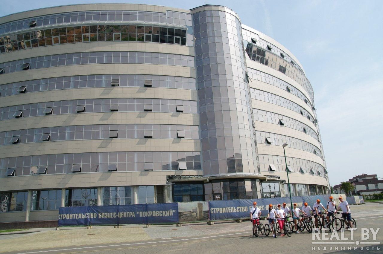 Далее остановка у бизнес-центра «Покровский». Здание бизнес-центра почти готово. Его архитектурная концепция полностью вписывается в ансамбль «Минск-Арены» — те же космические формы. Инспекторы отметили, что у фасада все чисто и аккуратно. Сразу видно, что дело идет к сдаче.