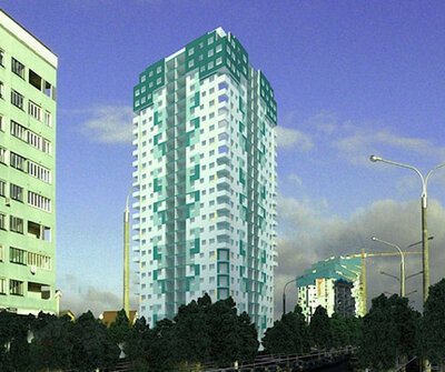 Объект представляет собой 25-тиэтажный 1-подъездный каркасно-блочный жилой дом на 144 квартиры. На первом этаже дома проектом предусмотрены встроенные помещения (офисы) общей площадью 520 м². В состав объекта входит подземный гараж-стоянка на 49 машино-мест.