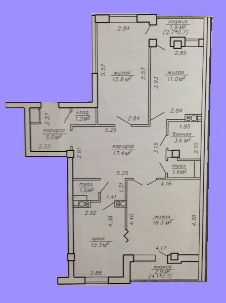 Общая площадь 92,6 кв.м., жилая 45,1 кв.м., кухня 12,3 кв.м., 2 лоджии, одна из которых имеет встроенный шкаф, высота потолков 2,78 м. 11-й этаж 13-этажного дома.