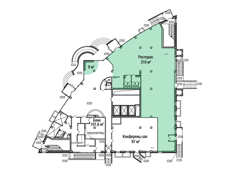 Приятным дополнением, а возможно даже и популярным направлением развития бизнеса, станут совместные мероприятия с запланированным на 1-ом этаже конференц-залом площадью 97 м2 и общей вместимостью до 100 человек.