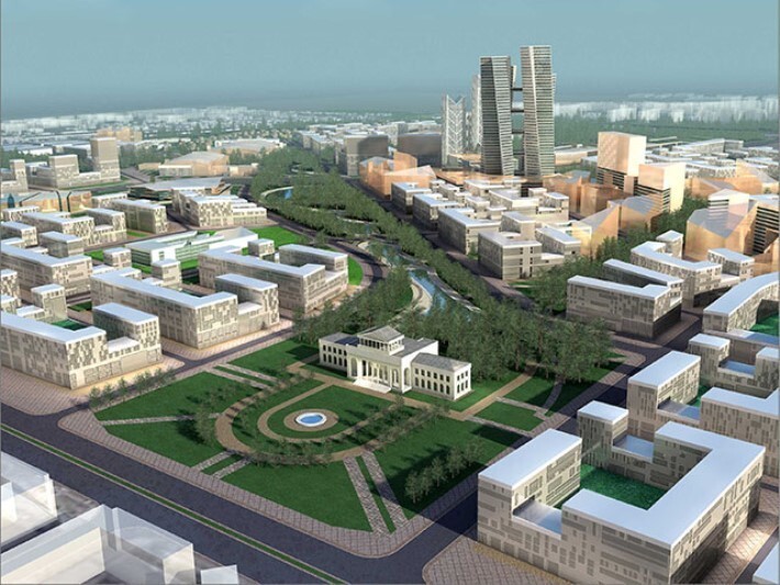 Общественная, а иначе говоря, деловая зона сосредотачивается ближе к центру, там, где сегодня находится взлетно-посадочная полоса. Полоса превратится в бульвар, вдоль которого разместятся небольшие строения: офисы, гостиничные и торговые комплексы.