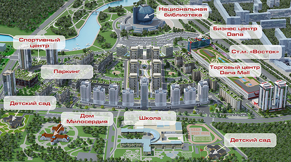 — Внешняя инфраструктура комплекса — школы, детские садики и поликлиники