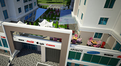 — Внутренняя инфраструктура комплекса — супермаркет «Престон», торговый центр, фитнес центр