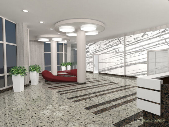 Конструкция здания и внутренние планировки первого и второго этажей позволяют организовать отделение банка, шоу-рум, выставочный павильон. Широкие, просторные и светлые помещения с панорамными окнами дают возможность комфортного обслуживания клиентов на самом высоком уровне.