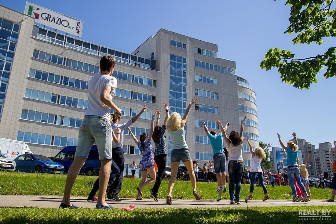 Так, 22 мая в микрорайоне Уручье состоялся настоящий праздник. Под звуки барабанов и зажигательный флэш-моб «Порт» призывал всех своих «жильцов» проголосовать за любимый бизнес-центр. В Премии объект участвует сразу в двух номинациях: «Лучший бизнес-центр» и «Самый отзывчивый застройщик», и, судя по количеству счастливых лиц в окнах и на пороге здания, у объекта есть все шансы на победу.