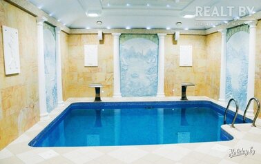 В деревне Тарасово в 3 км от МКАД предлагается в аренду коттедж, рассчитанный на компанию до 30 человек. Он самый дорогой в нашем списке, и располагается ближе всего от Минска. На территории участка находится озеро, гостям предоставляются лодки и плоты. Здесь же вы можете порыбачить. В доме есть банкетный зал, турецкая и русская бани, большой бассейн, джакузи. При желании, вы можете воспользоваться услугами массажиста. Цена — $ 1350 за сутки в будние дни, $ 1500 — в выходные.