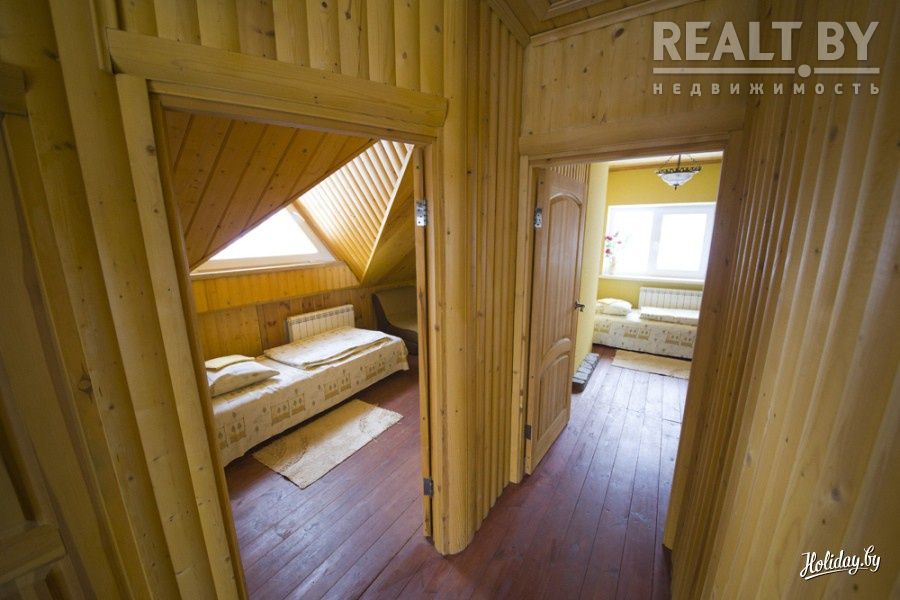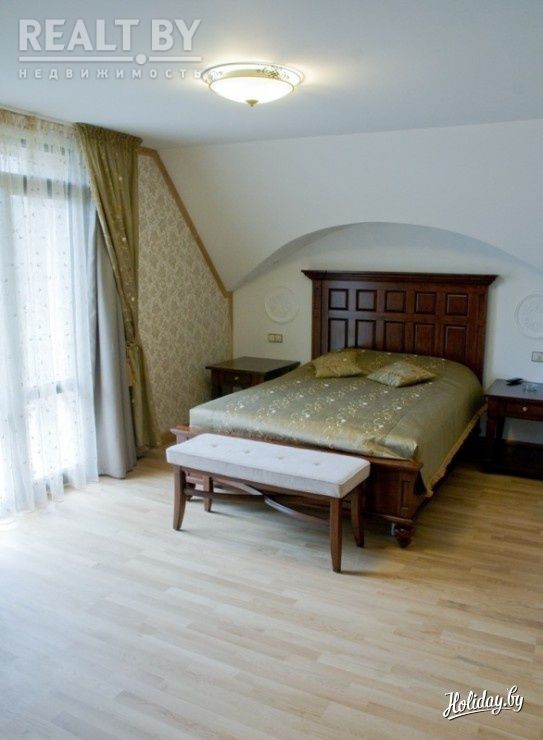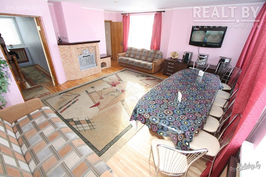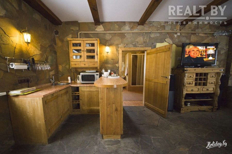 Сельская усадьба «Иван-да-Марья» в 14 км от МКАД (Острошицкий Городок) рассчитана на компанию 10−12 человек. В доме три большие спальни, есть банкетный зал, кухня, холл для отдыха и баня. Учитывая, что дом находится в Логойском районе, можно предположить, насколько красивые виды открываются из его окон. Во дворе есть беседка и оборудованное место для приготовления шашлыка. Впечатлил список возможных развлекательных программ: рыбалка, катание на лыжах и санках, велотуры, поход в лес. Цена — $ 200 за дом в сутки в любой день.