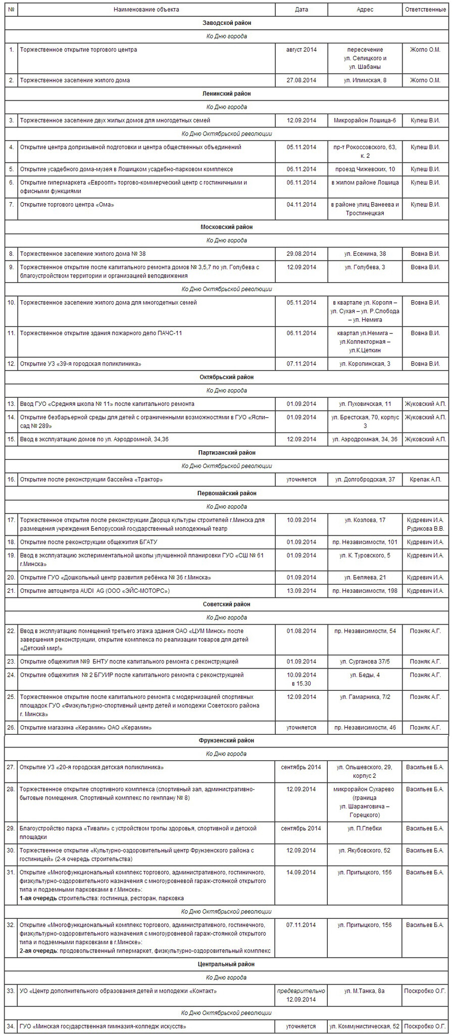 В начале сентября завершится реконструкция третьего этажа ЦУМ. 12 сентября на ул. Якубовского откроется «Культурно-оздоровительный центр Фрунзенского района с гостиницей», а на ул. Гамарника — ГУО «Физкультурно-спортивный центр детей и молодежи Советского района г. Минска».