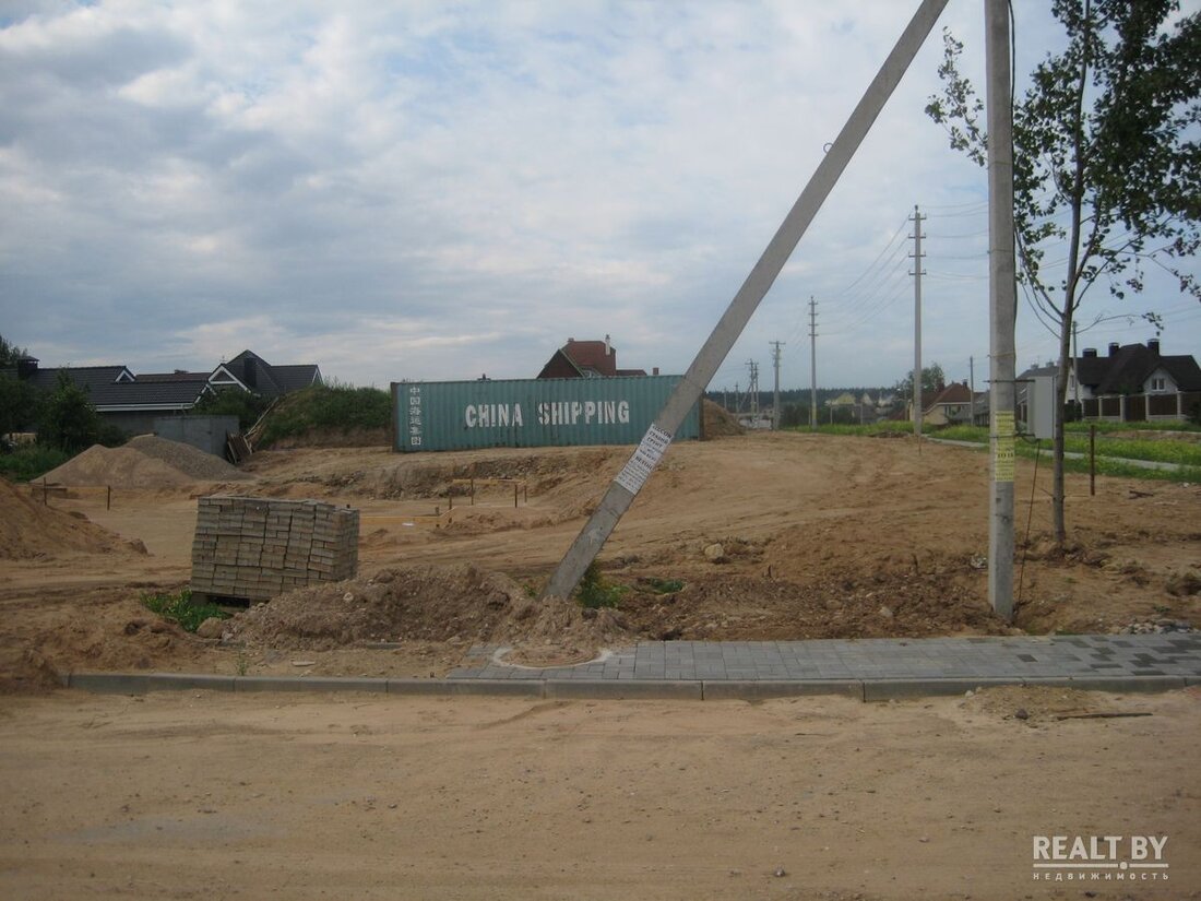 Участок находится на углу улиц Вишневой и Ботанической. Верхний слой грунта снят — участок очень ровный. Все улицы вокруг заасфальтированы, территория хорошо благоустроена — тротуары, бордюры, проезды, на улицах фонари. Скорее всего, раньше он принадлежал другому хозяину — видны попытки разработки территории — снят верхний слой грунта, выполнена планировка участка под застройку. Все коммуникации рядом. Одним словом — престижный участок в престижном поселке.