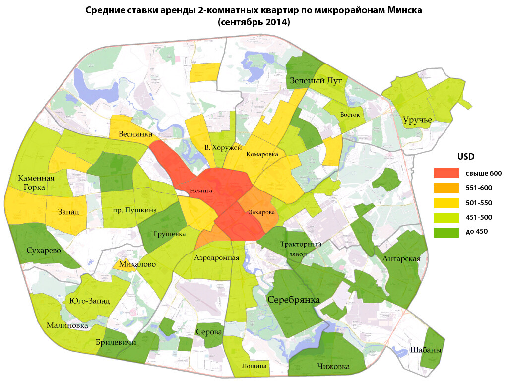 Что касается микрорайонов города с самыми низкими арендными ставками, то в сентябре к ним относились Курасовщина, Тракторный завод, Шабаны, Чижовка и район улицы Серова.