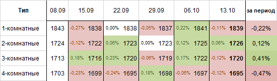 Структура предложения по типам квартир выглядит на 13 октября следующим образом: