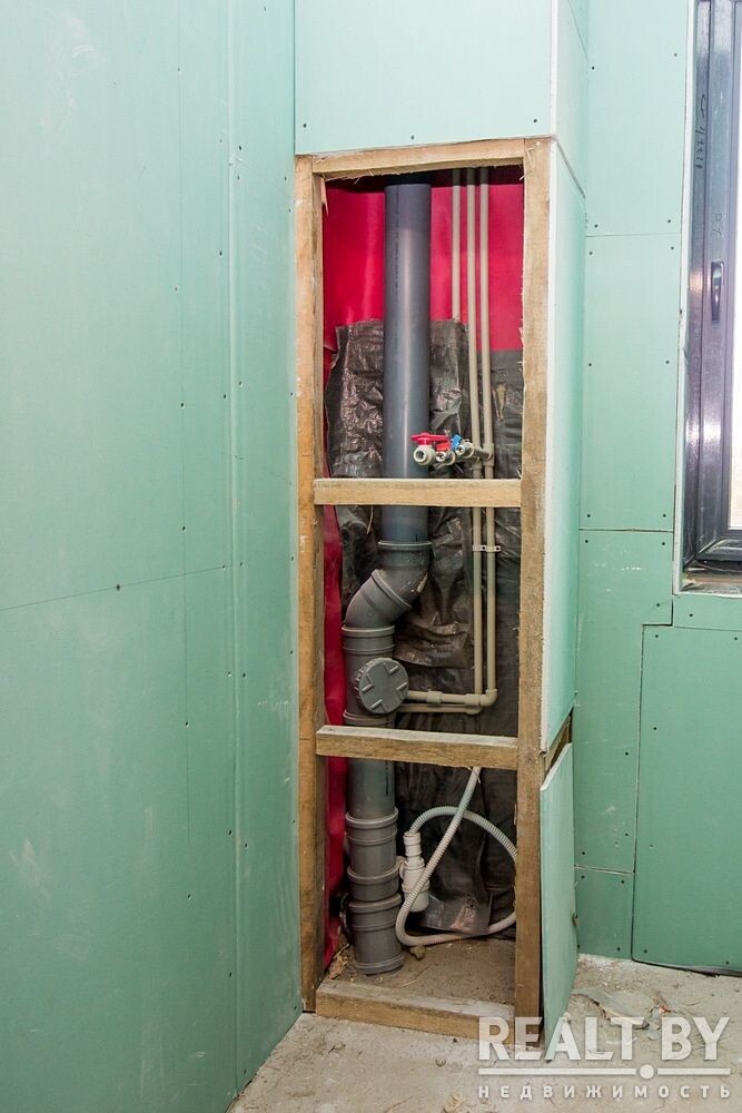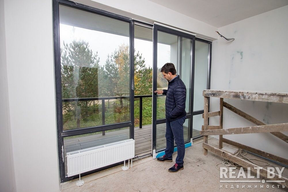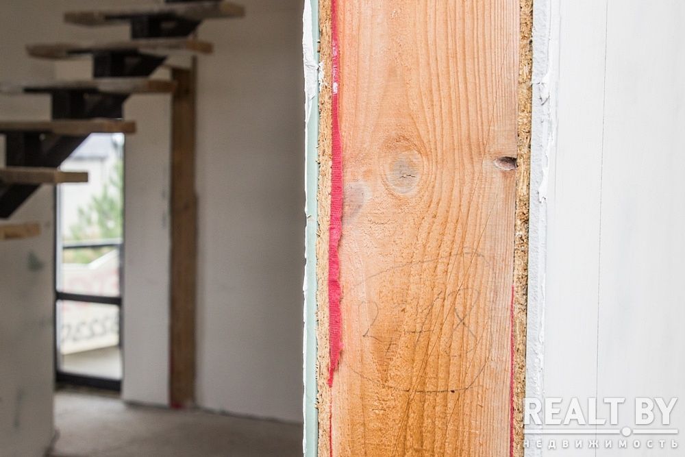 — Для строительства этого дома использовалась канадская каркасная технология. Она представляет собой следующее: каркас создается из крупных брусов, между ними крепятся доски такой же ширины, как и брус. После того, как каркас был полностью готов, мы начали монтаж утеплительной системы. Для этого были заложены плиты утепления, а изнутри и снаружи добавлена пленка для пароизоляции и ветрозащиты. Изнутри стены обшиты двойным слоем ГВЛ (гипсоволокнистые листы) и OSB (ориентированно-стружечная плита), а снаружи OSB и итальянская плитка по первому этажу и OSB со штукатуркой по второму и третьему. Применение такой каркасной технологии обошлось примерно на 40% дороже, чем стандартный каркас.