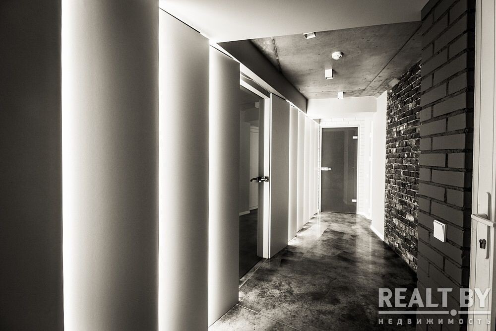 Отличительной чертой этого дома было наличие монолитных перекрытий, что не осталось незамеченным дизайнером, и было использовано, как часть оформительской концепции будущего интерьера.