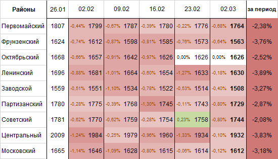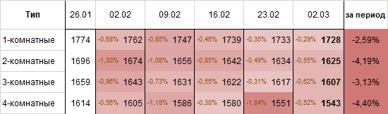 Структура предложения по типам квартир выглядит на 2 марта следующим образом: