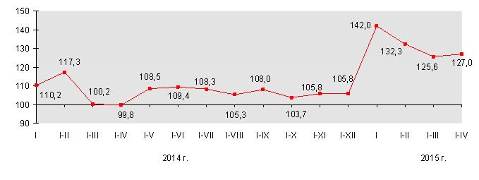 Ввод в эксплуатацию жилья по областям и г. Минску за январь — апрель 2015 г.
