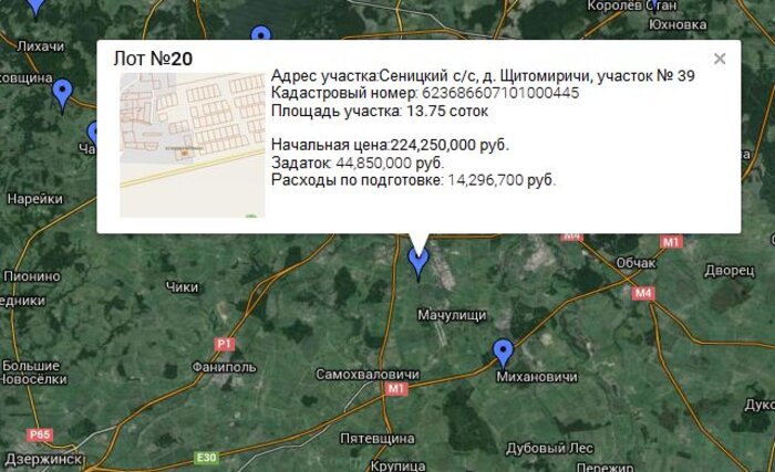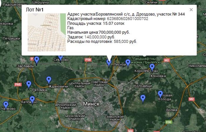 Участок в деревне Дроздово — самый дорогой лот предстоящих торгов, ведь располагается населенный пункт всего лишь в двух километрах от столицы. Выставленный на торги участок находится в новой коттеджной застройке, вблизи леса. Территория участка ровная, пригодная для строительства. Все соседи активно строятся, а вот жилых домов поблизости практически нет. Вдоль участка проходит линия электропередач, недалеко есть газ. Главная проблема поселка — дороги. Несмотря на приближенность к столице, подъезд к участку практически отсутствует, в плохую погоду сюда и вовсе будет не добраться.