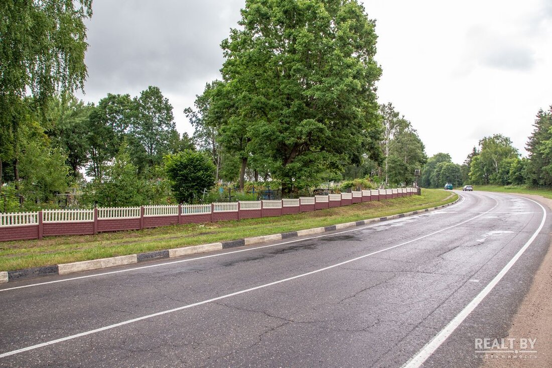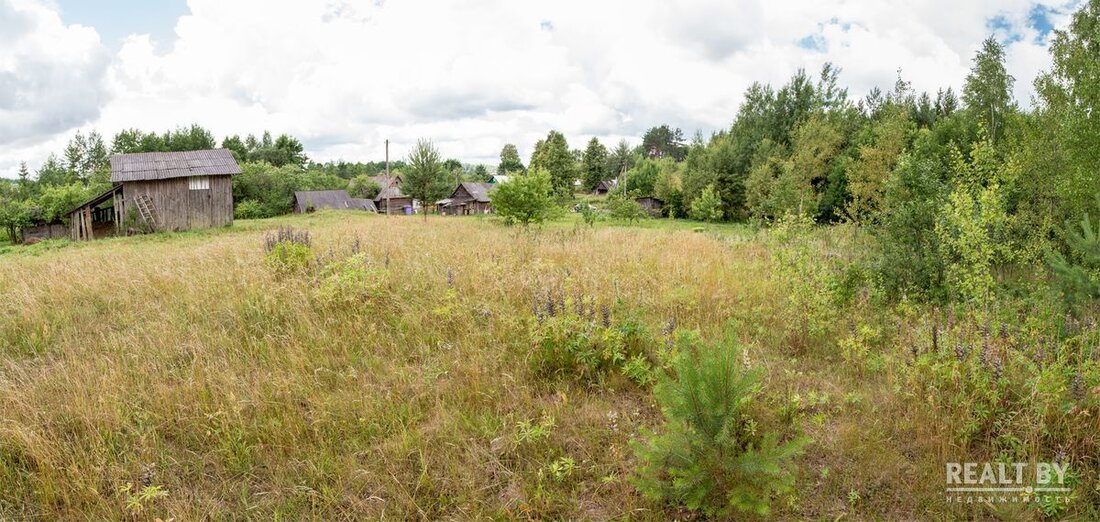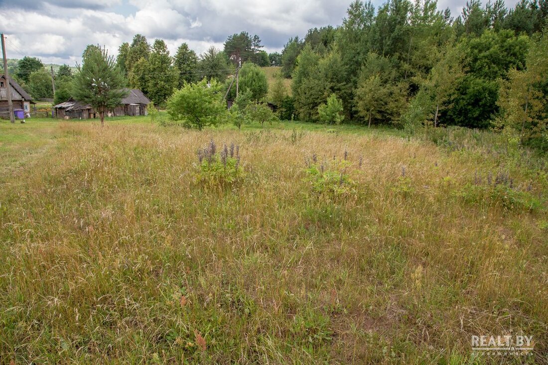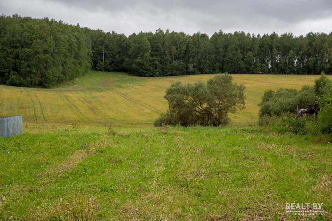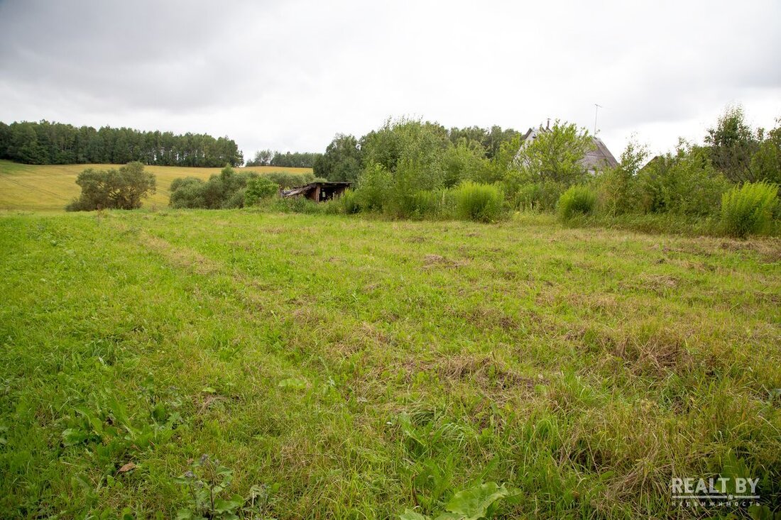 Участок располагается в самой обычной деревне, на возвышенности между жилыми домами. Его территория скошена, наверное, используется соседями под свои нужды. Сам участок довольно неплохой, находится вдоль дороги, рядом стоят столбы линии электропередач. С территории участка открывается живописный вид на холмы, леса и поля. К деревне из Минска ведет асфальтированная трасса, лишь последние 1,5 километра придется проехать по гравийке.