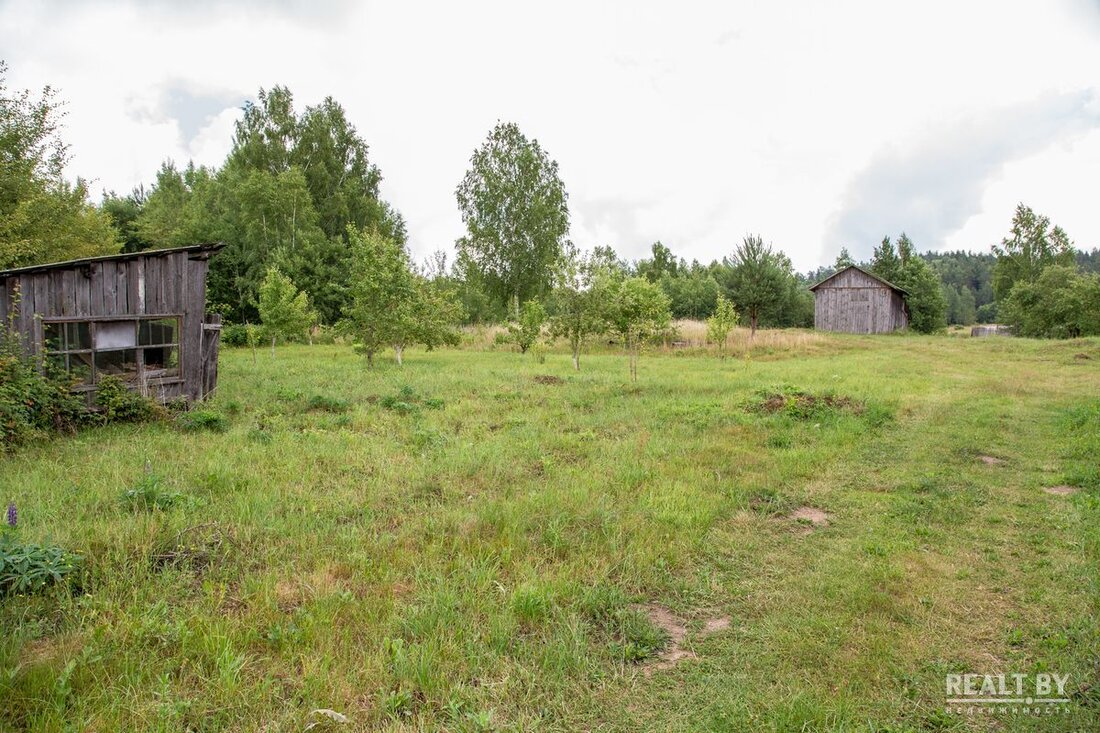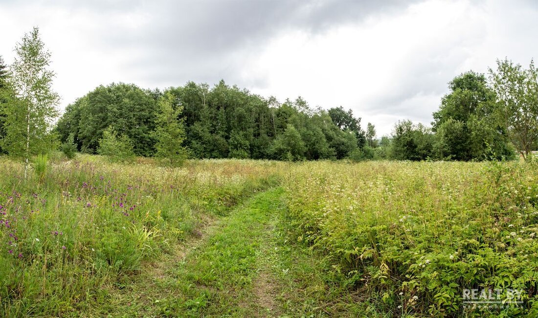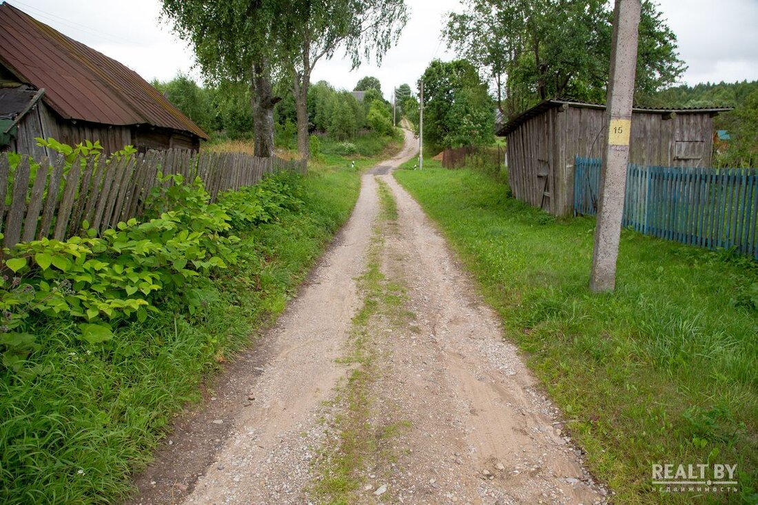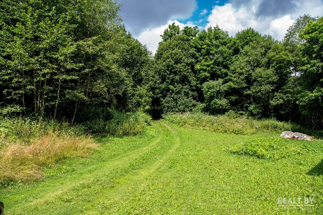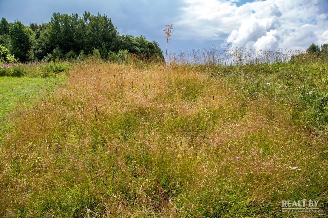 Участок располагается в самой обычной деревне, на возвышенности между жилыми домами. Его территория скошена, наверное, используется соседями под свои нужды. Сам участок довольно неплохой, находится вдоль дороги, рядом стоят столбы линии электропередач. С территории участка открывается живописный вид на холмы, леса и поля. К деревне из Минска ведет асфальтированная трасса, лишь последние 1,5 километра придется проехать по гравийке.