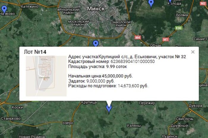 Крупицкий с/с, д. Еськовичи, участок № 31 и (аукцион 7 августа, лот № 14) и участок № 32 (аукцион 14 августа, лот № 14)