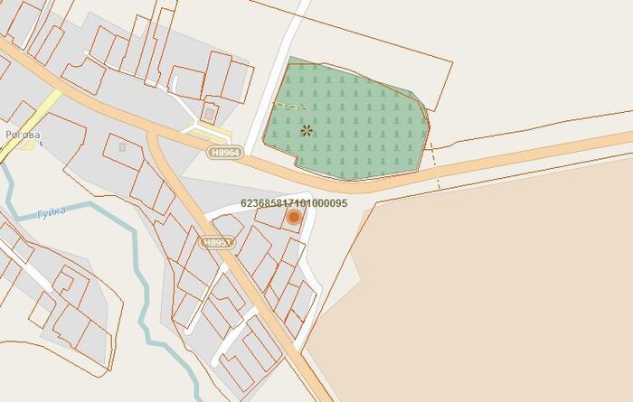 От трассы Н8964 участок отделяет лишь небольшая лесополоса, однако подъезда к его территории нет. Сам участок ровный, находится на возвышенности. С его территории открывается красивый вид на деревню, поля и леса. Правда, неприятным сюрпризом для некоторых может стать соседство с кладбищем, оно находится прямо через дорогу от участка.