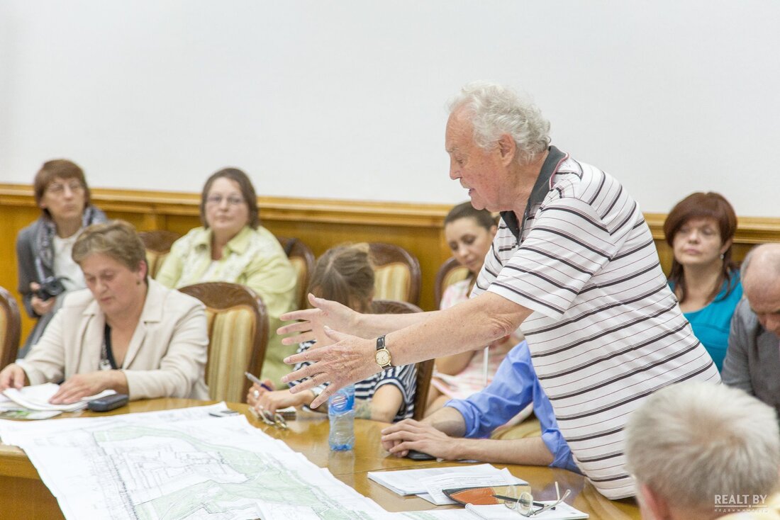 — Почему этот объект запроектирован именно на этом месте? Дайте градостроительное обоснование! — требовал автор Слепянской водной системы, знаменитый архитектор Борис Юртин. — Поймите, вы совершаете очередное градостроительное преступление. Некогда водно-зеленый диаметр Минска признавался на мировом уровне, к нам приезжали эксперты из разных стран, чтобы перенять опыт. Сегодня же от былого величия не осталось и следа. Мало того, что на этом участке вдоль русла реки уже построили огромное сооружение — гостиницу «Пекин». Так вы собираетесь застроить и последний зеленый клочок земли. Дышать здесь будет нечем, в Свислочь будут сбрасываться отходы, экологическая ситуация ухудшится в разы. Этого делать никак нельзя. Найдите другой участок, стройте там рестораны, все, что хотите, но здесь комплексу не место. Я предлагаю всем выступить за бойкотирование данного проекта.