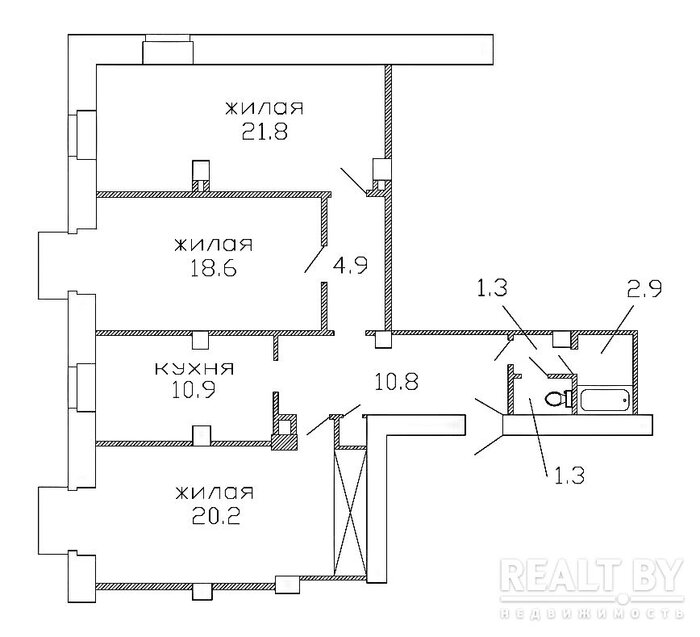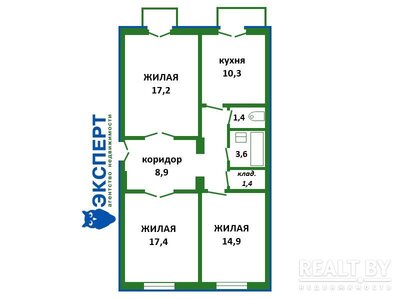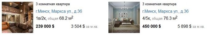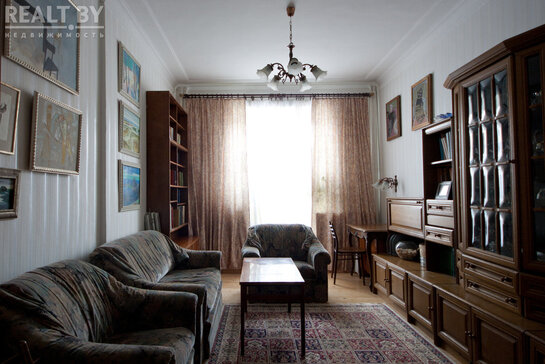 В базе объектов Realt.by мы нашли две трехкомнатные двухэтажные квартиры, которые сегодня можно приобрести в знаменитом доме на Карла Марска, 36.