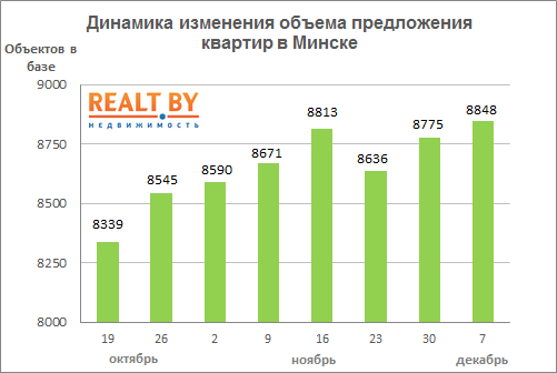 За неделю, с 30 ноября по 7 декабря 2015 года, информационно-аналитическим центром Realt.by были отмечены следующие изменения на первичном и вторичном рынках недвижимости города Минска: