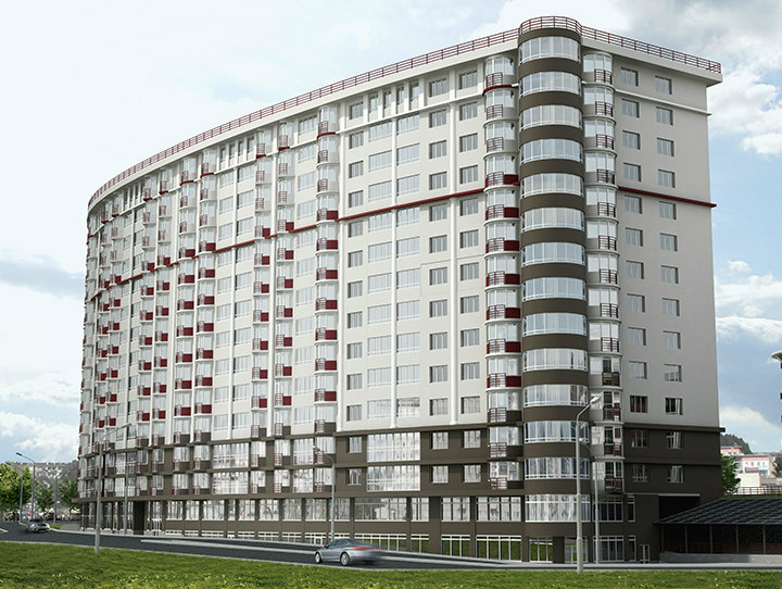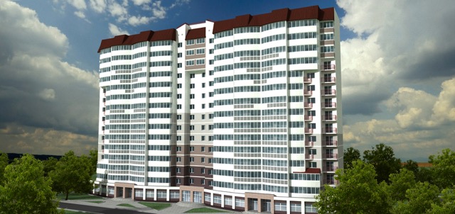 Семиэтажный, двухсекционный, первый в городе каркасно-блочный жилой дом.
