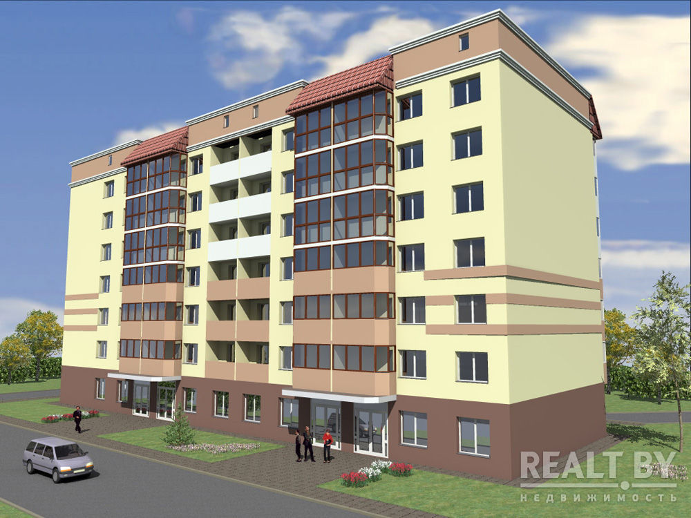 Новостройка в центре города Смолевичи. Подъезд к зданию с улицы Советской.