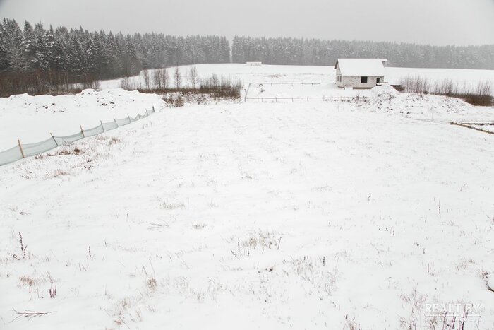 Участок выделен на пустыре вдоль дороги, по соседству находится всего лишь один жилой дом. Подъездные пути оставляют желать лучшего. Территория участка ровная, удобная для строительства. С участка открывается живописный вид на поля и леса. Из коммуникаций заявлено только электричество.