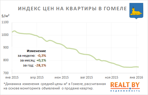 За неделю с 11 по 18 января 2016 года информационно-аналитическим центром Realt.by были отмечены следующие изменения на вторичном рынке жилья города Гомеля: